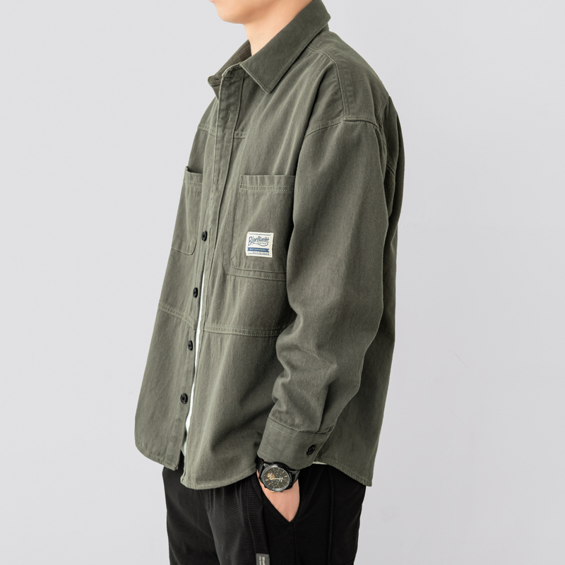 牛仔衣 工装 高级感防褪色原色水洗牛仔外套男宽松大码 翻领夹克新款