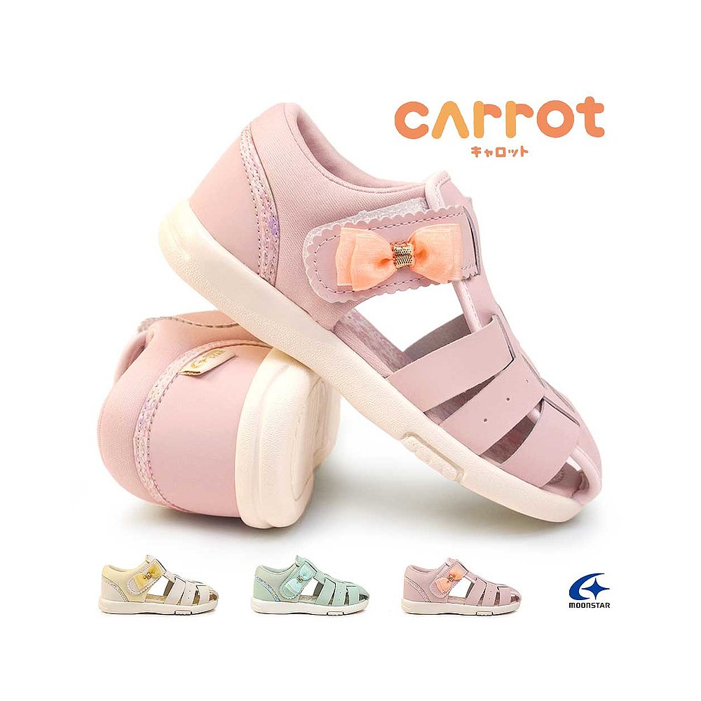 儿童魔法廓尔喀凉鞋 日本直邮Moonstar C2363 丝带 胡萝卜凉鞋