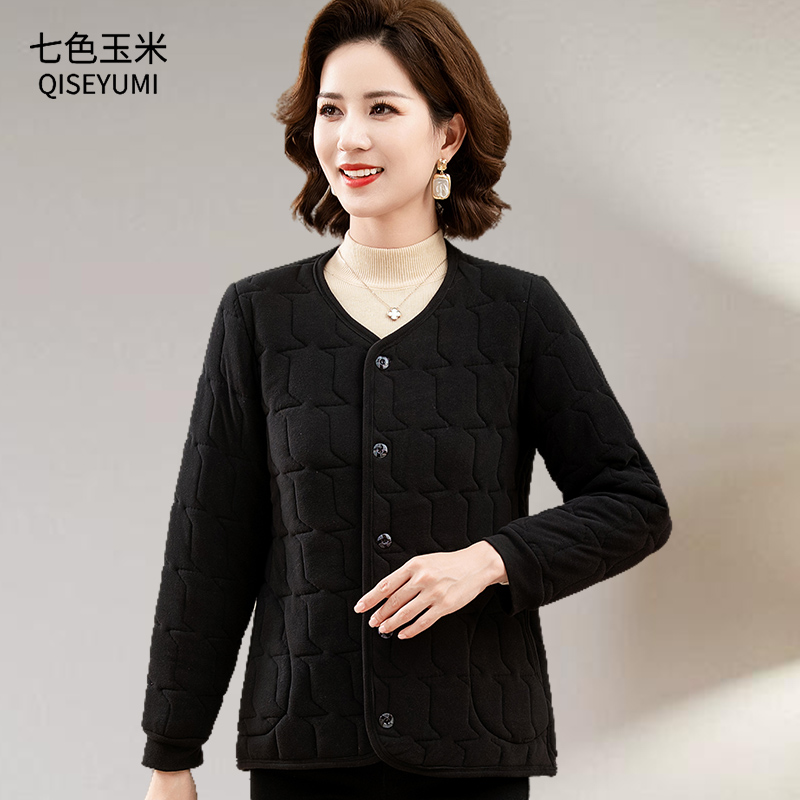妈妈秋冬装 德绒保暖棉衣中老年低领内穿防寒小棉袄女老人丝绒棉服