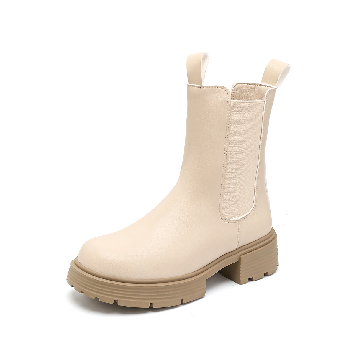 大东厚底烟筒靴女春秋2025新款 黑色增高短靴马丁靴 切尔西女靴爆款