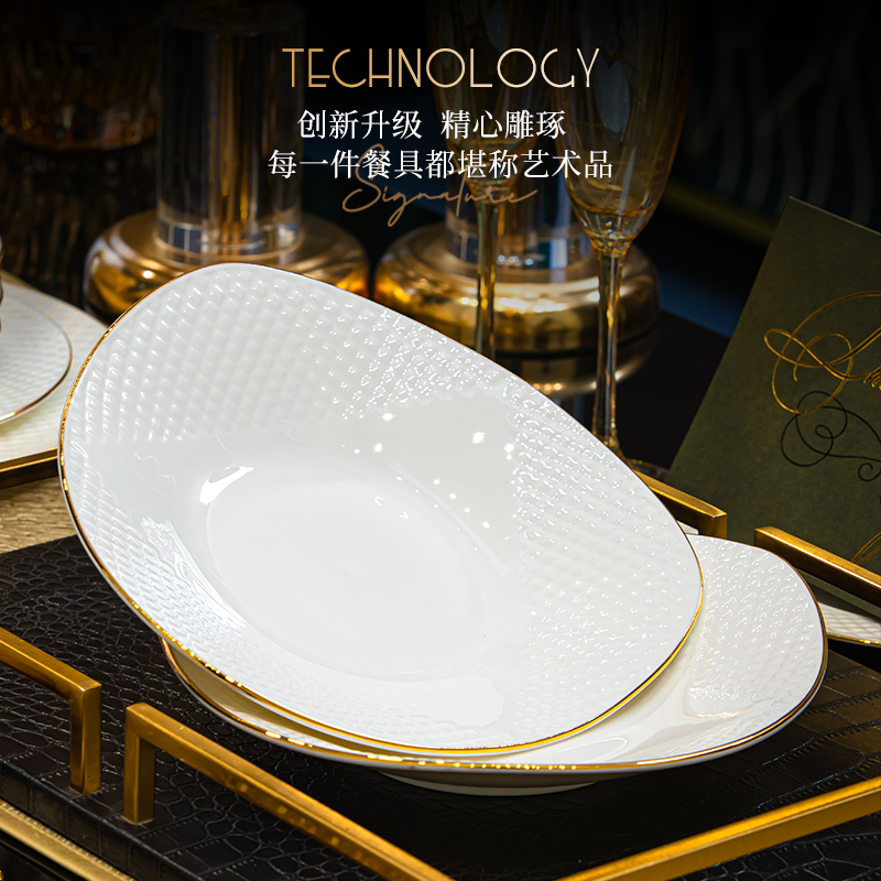 陶瓷盘子菜盘家用纯白釉下彩2025新款 凉菜盘蔬菜水果沙拉碗翘脚碗