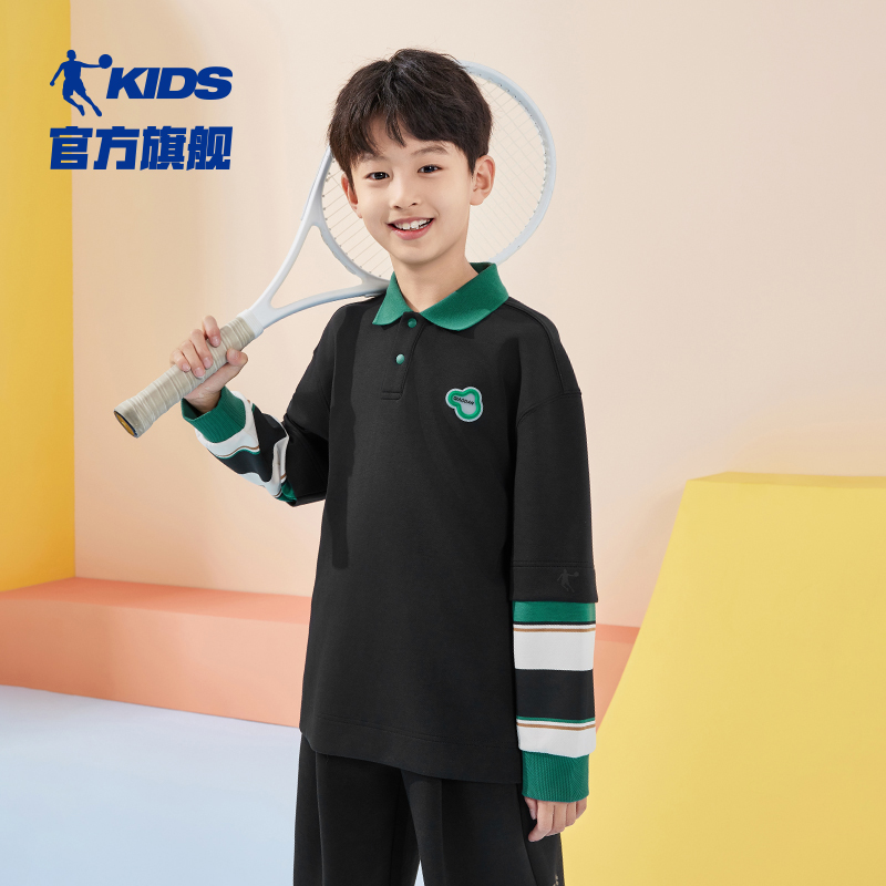 中大童长袖 儿童卫衣2025春秋新款 上衣 乔丹男童T恤polo衫 商场同款