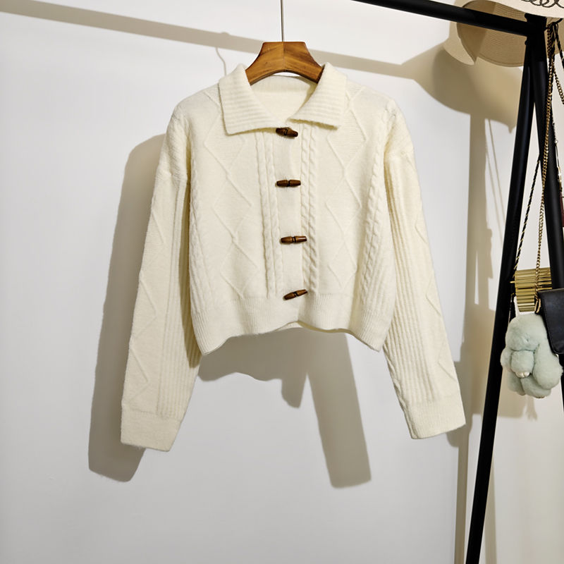 宽松百搭软糯气质针织上衣 韩版 学院风麻花毛衣开衫 外套女秋冬新款