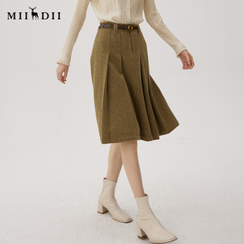 谜底毛呢半身裙秋新品 通勤风气质高腰百褶裙中长裙243MB1133
