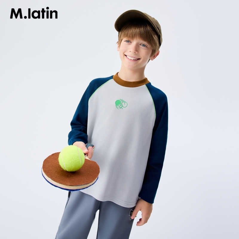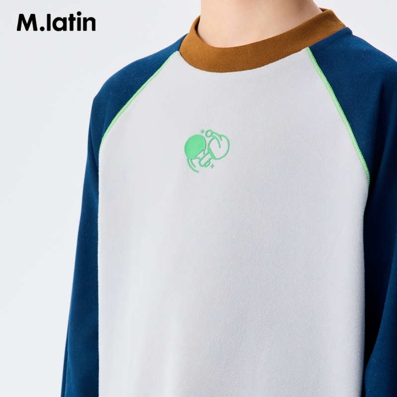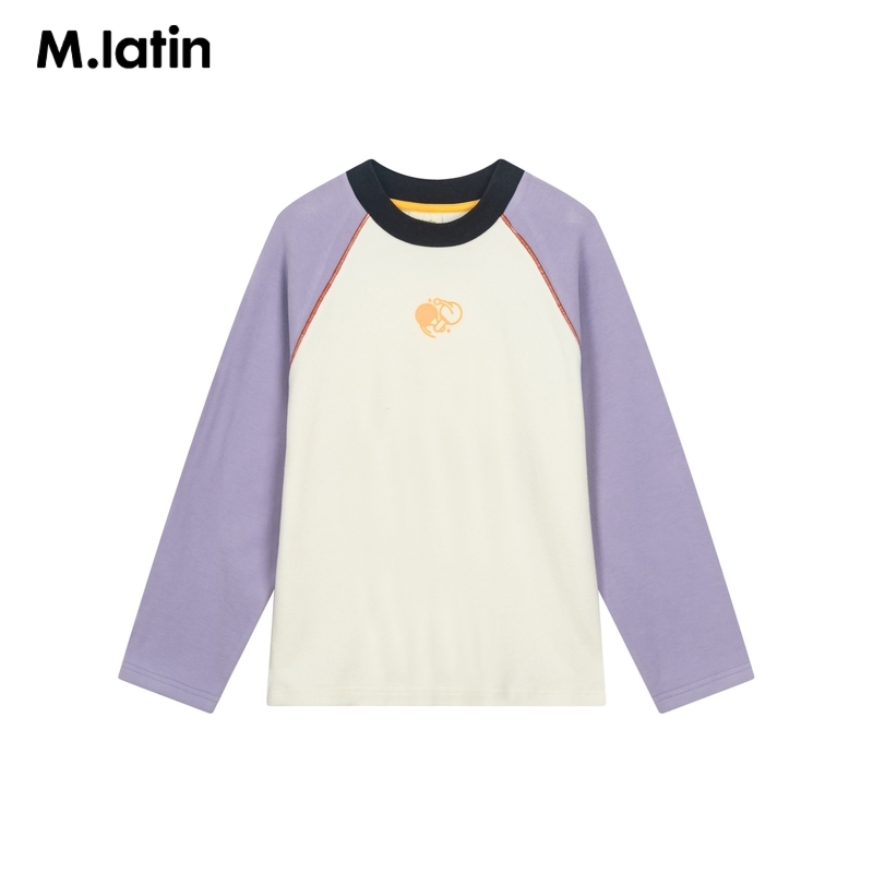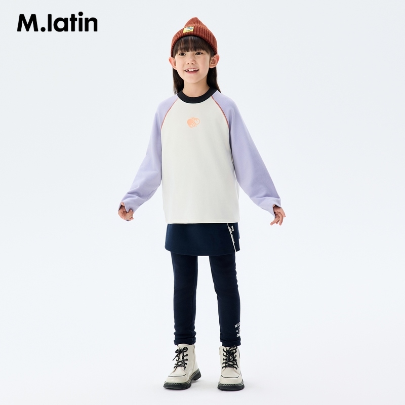 男女童大童撞色印花插肩袖 新款 半高领T恤 儿童T恤24冬装 马拉丁童装