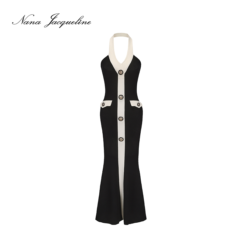 NanaJacqueline挂脖针织连衣裙女新款 英同款 复古性感名媛 张元