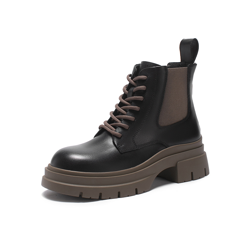 美拉德棕色靴子厚底黑色短靴 秋复古女鞋 英伦风马丁靴女款 2025新款