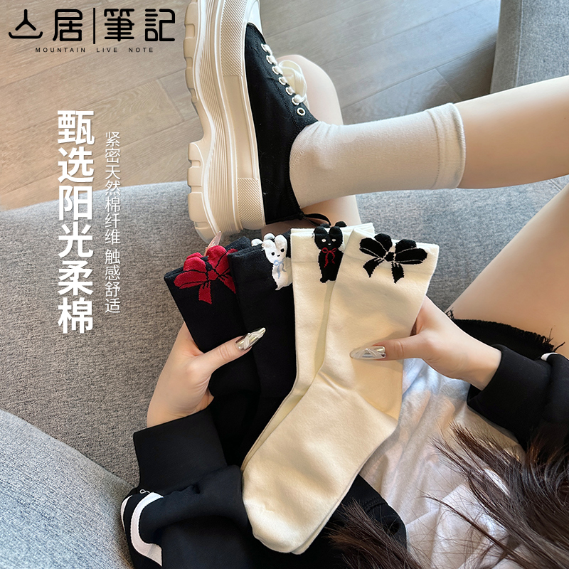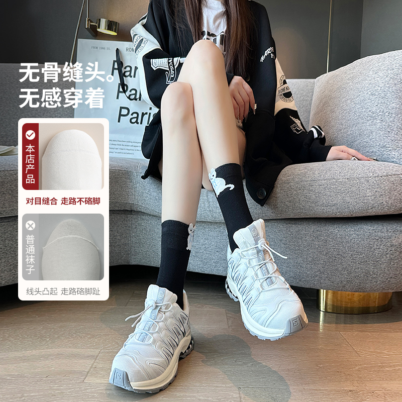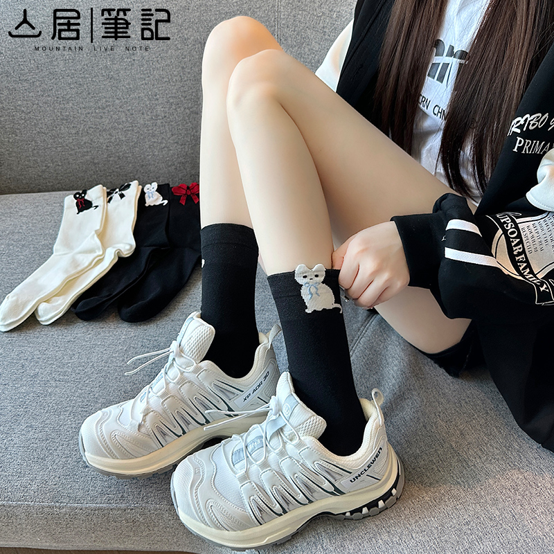 ins潮中筒袜女生黑白色无骨长袜棉袜防臭 爆款 袜子女秋季 2025新款