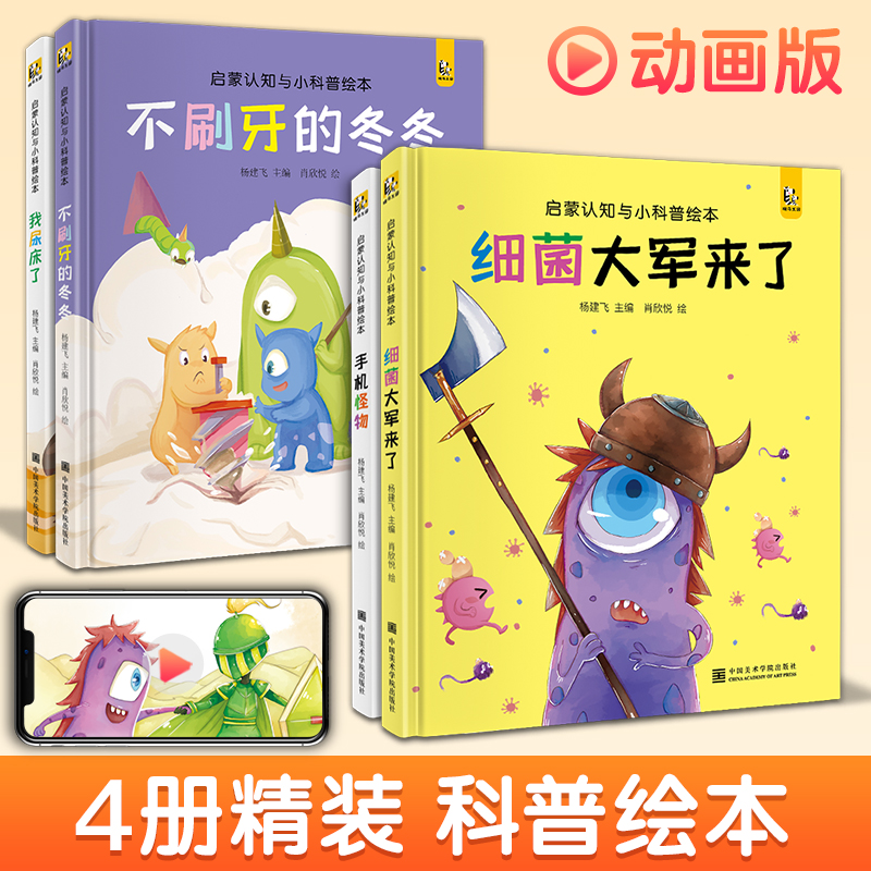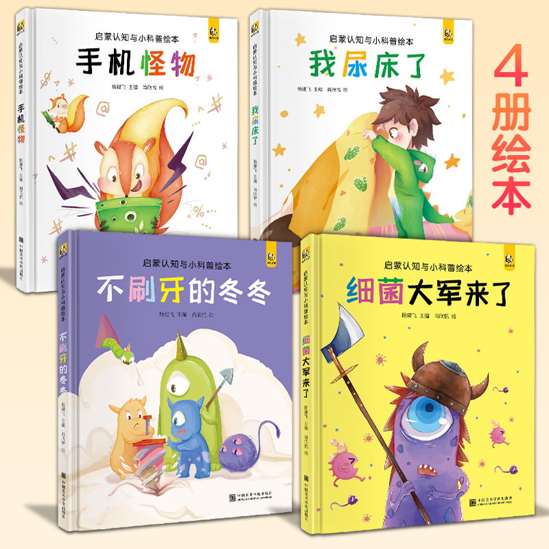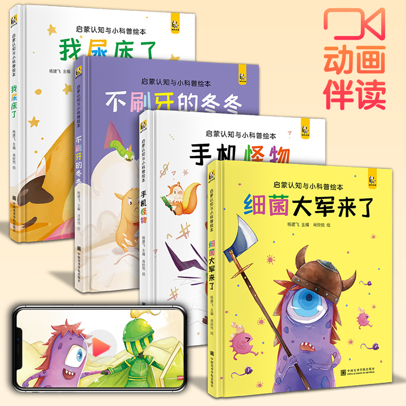 细菌大军来了不刷牙 ·4册 冬冬我尿床了手机怪物宝宝睡前故事绘本儿童早教启蒙认知小科普故事书籍拼音斑马王国 精装