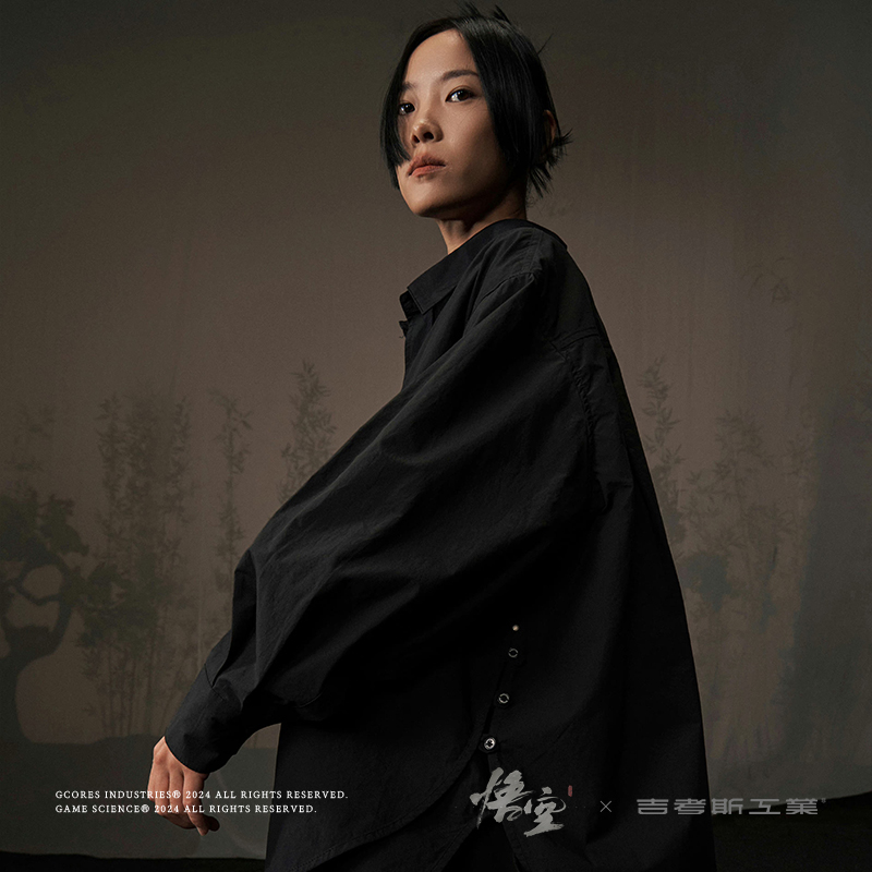 GFX1E900571 24春新品 GXG男装 黑色激光烧花通勤牛仔衬衫