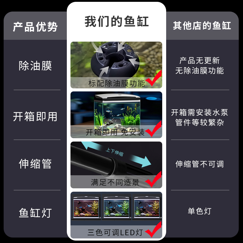 智能鱼缸过滤制氧一体机客厅2025新款 桌面家用小型超白玻璃水族箱