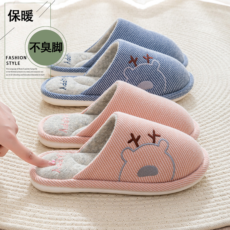 四季 棉拖鞋 女秋冬家居室内居家防滑家用情侣软底静音地板棉麻拖鞋