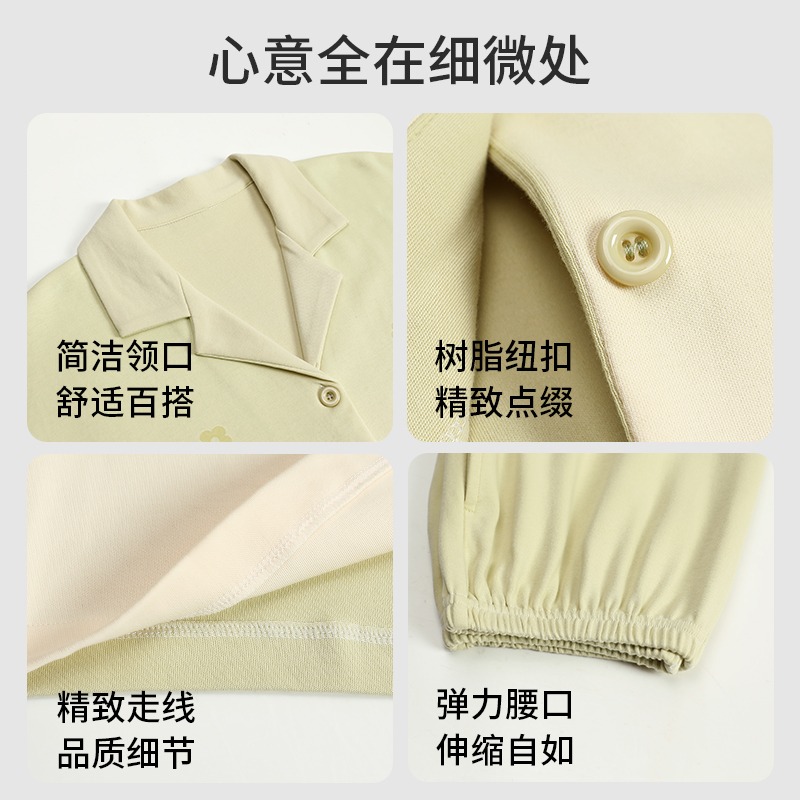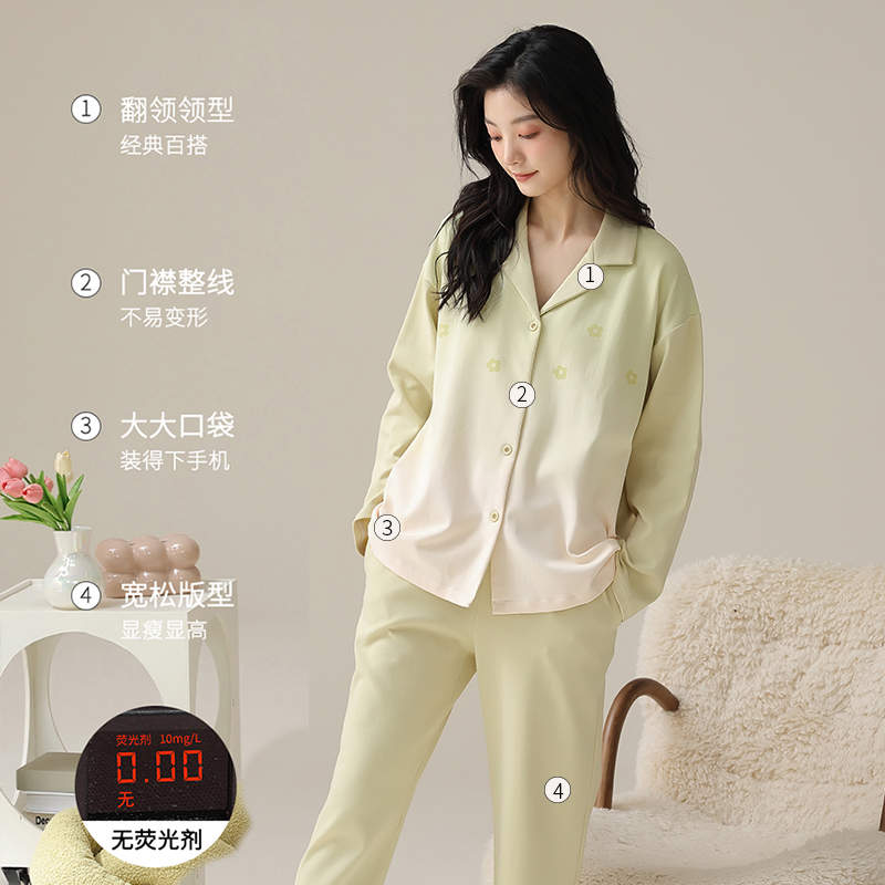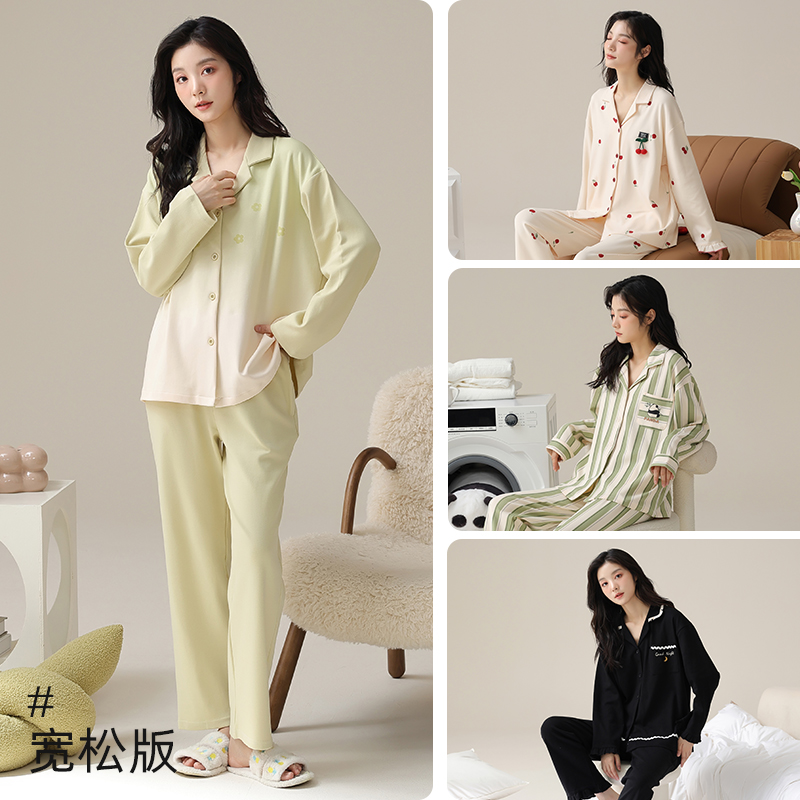 长袖 全棉大码 套装 女款 家居服 简约休闲秋季 芬腾春秋睡衣女纯棉开衫