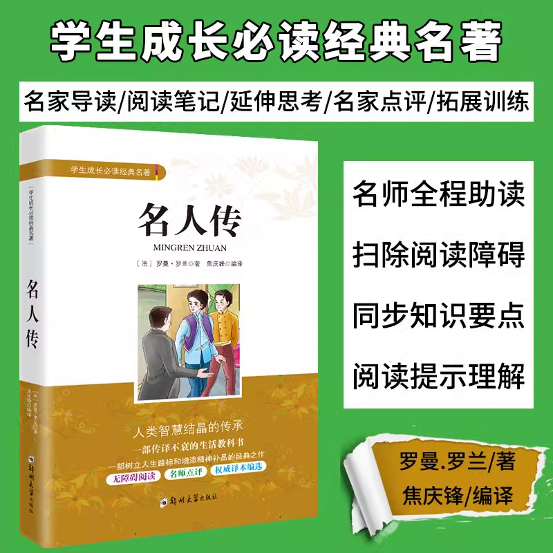 经典 名人传正版 名著无障碍阅读初中初二下学期课外阅读书籍老师推荐 八年级下册阅读课外书学生成长必读经典 阅读书目 罗曼罗兰原著