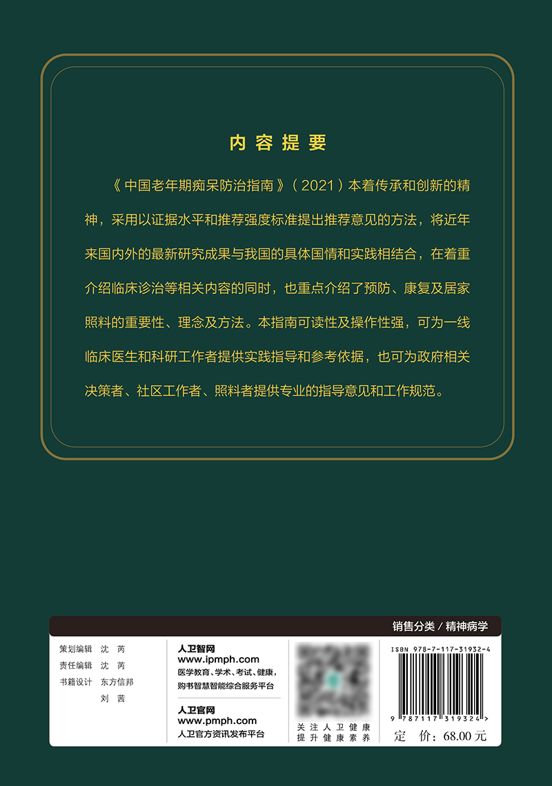 康复和社区管理等更加规范 预防诊断治疗 于恩彦 9787117319324 社 中国老年期痴呆防治指南 人民卫生出版 期望使老年期痴呆