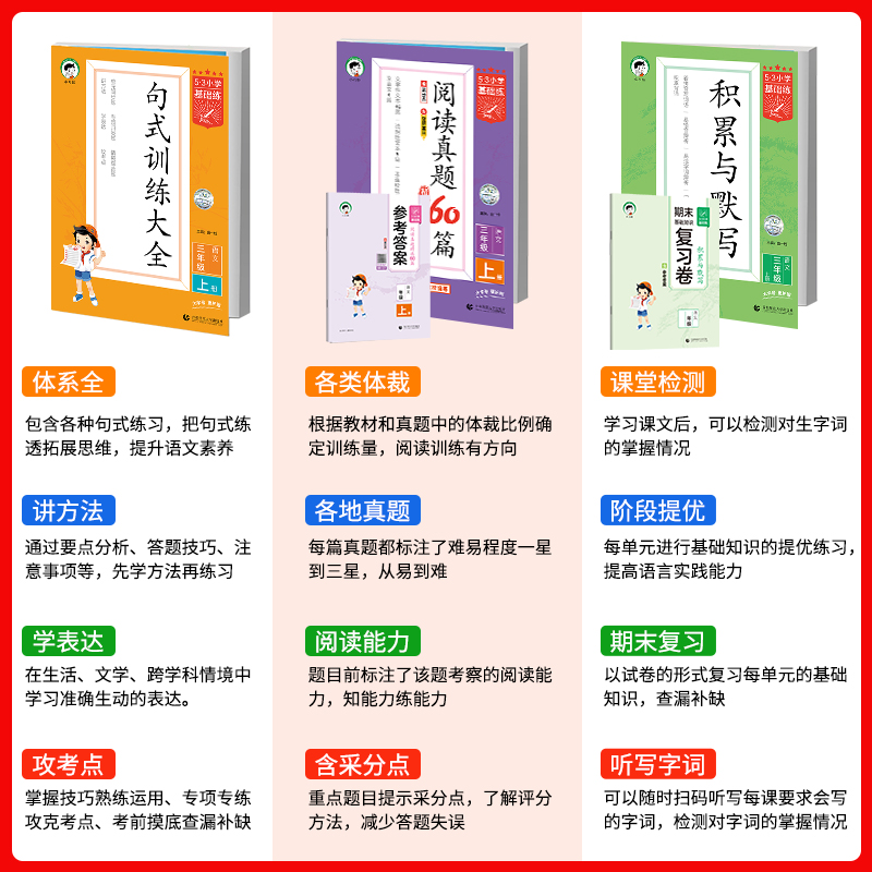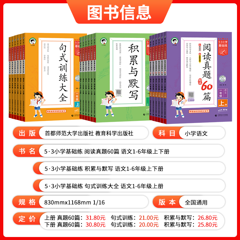 2025秋新版 训练大全积累与默写一二三四五六年级上册下册语文阅读真题60篇小学生写作字词句阅读理解专项训练习册 53小学基础练句式