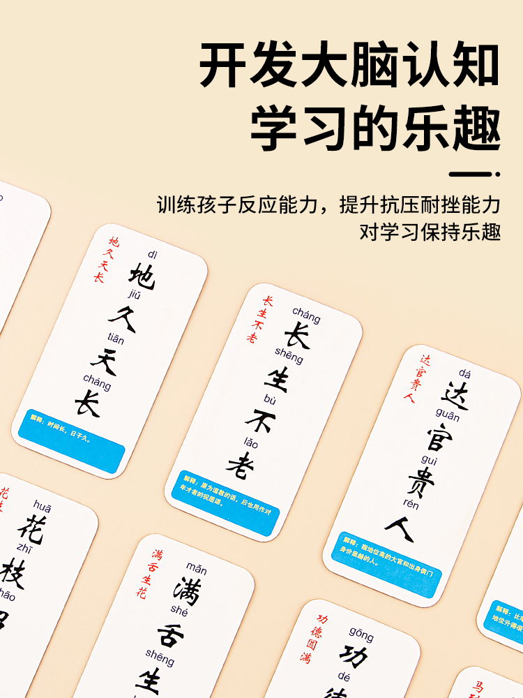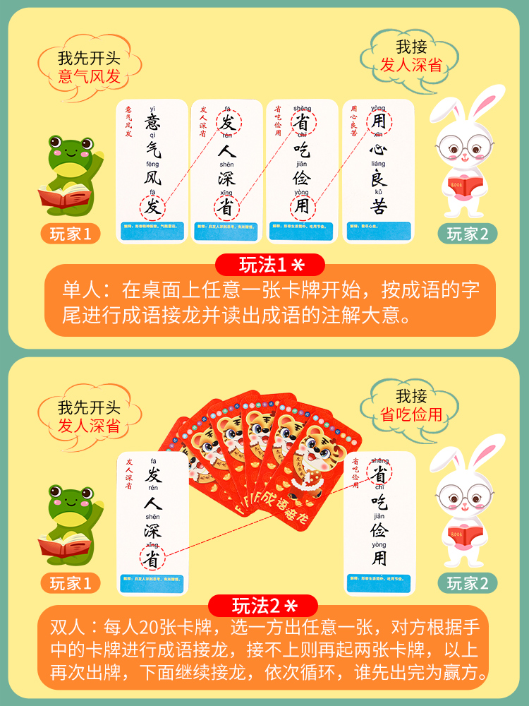 成语接龙扑克牌儿童魔法汉字趣味小学生版 识字卡拼字卡片游戏卡牌