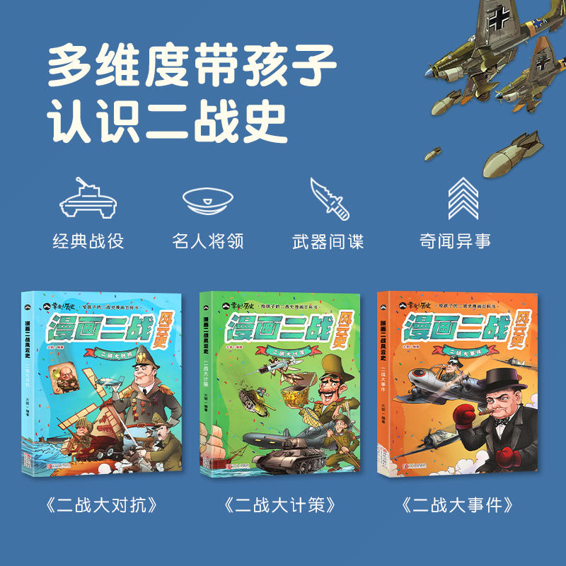 漫画二战风云史套装 共3册儿童文学小学生漫画故事书籍科普百科历史第二次世界大战全史增强国防意识世界战争史培养思辨力领导力