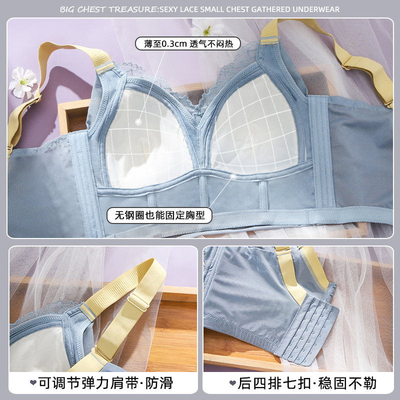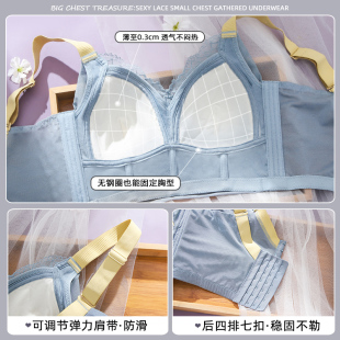 调整型大胸显小防下垂文胸罩超 薄款 夏季 矫正聚拢收副乳内衣女大码