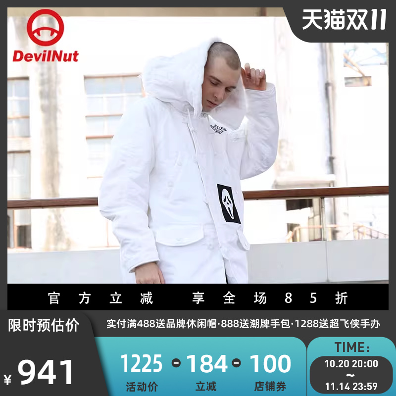 江南先生NewJNXS保暖防风可拆卸围巾撞色反光星星印花棉服厚外套