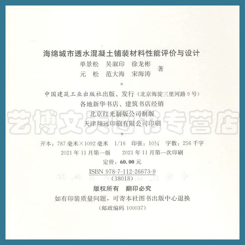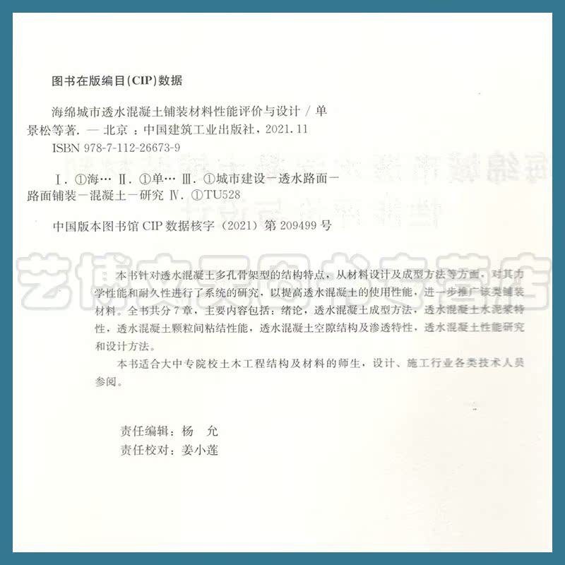宋海涛 社 单景松 元 松 徐龙彬 9787112266739 吴淑印 中国建筑工业出版 海绵城市透水混凝土铺装 范大海 材料性能评价与设计