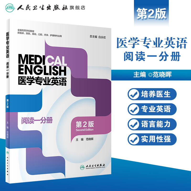 社9787117323550临床预防基础口腔药学护理英语教材书籍听说阅读第2版 医学专业英语 白永权范晓晖人民卫生出版 第二版 阅读一分册