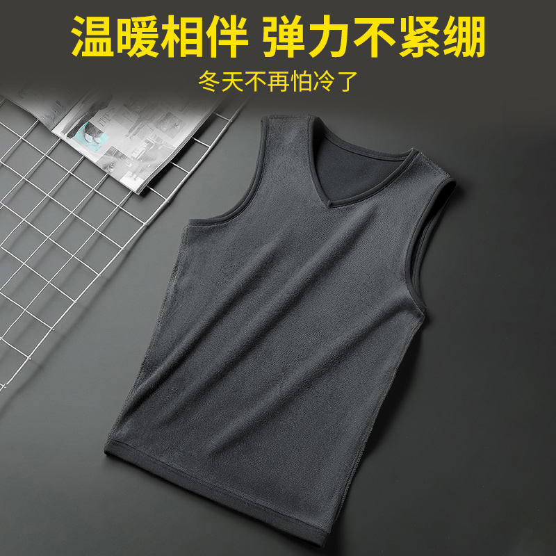 内穿打底上衣马甲内衣 无痕加绒德发热男款 猫人保暖背心男士 秋冬季