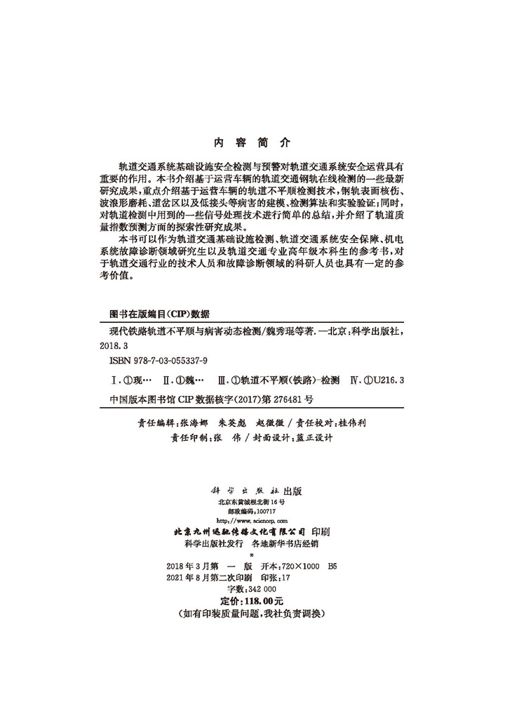 现代铁路轨道不平顺与病害动态检测 魏秀琨等