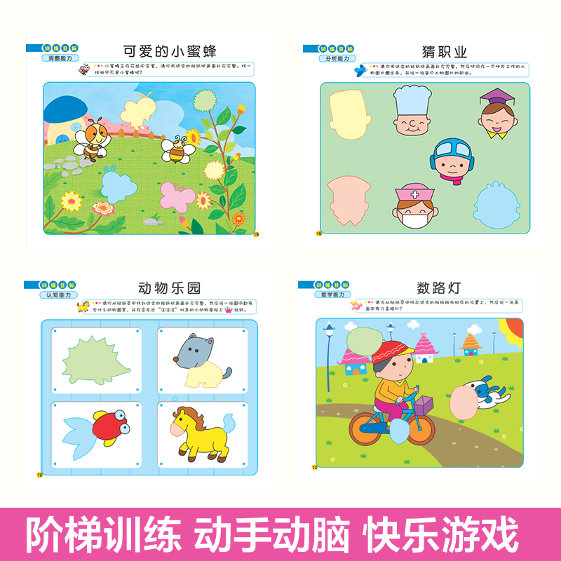 2岁左右脑逻辑思维游戏贴画书籍 3岁宝宝书籍创造力启蒙认知图书儿童幼儿园1 幼儿益智早教系列创造力专注力训练贴纸书全套12册