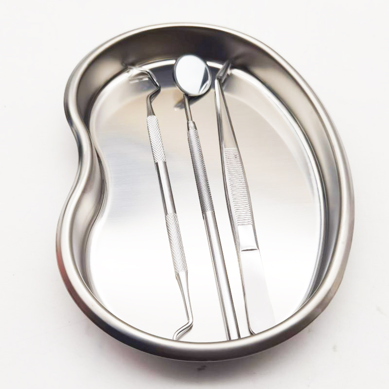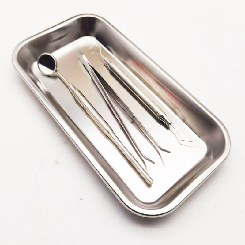 牙科探针镊子口镜三件套检查工具方盘放拔钳车针拔髓针器械盘医用