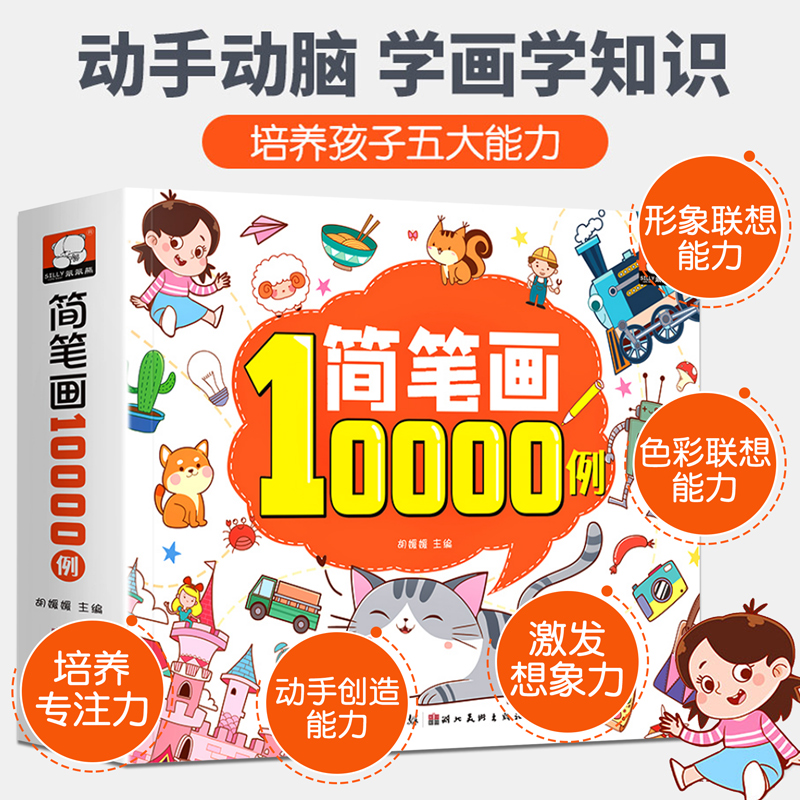 儿童简笔画大全手绘本10000例线装 绘画入门自学零基础启蒙幼儿园教材动物卡通人物教学书美术小学生5000例幼师教师用书 平铺加厚版