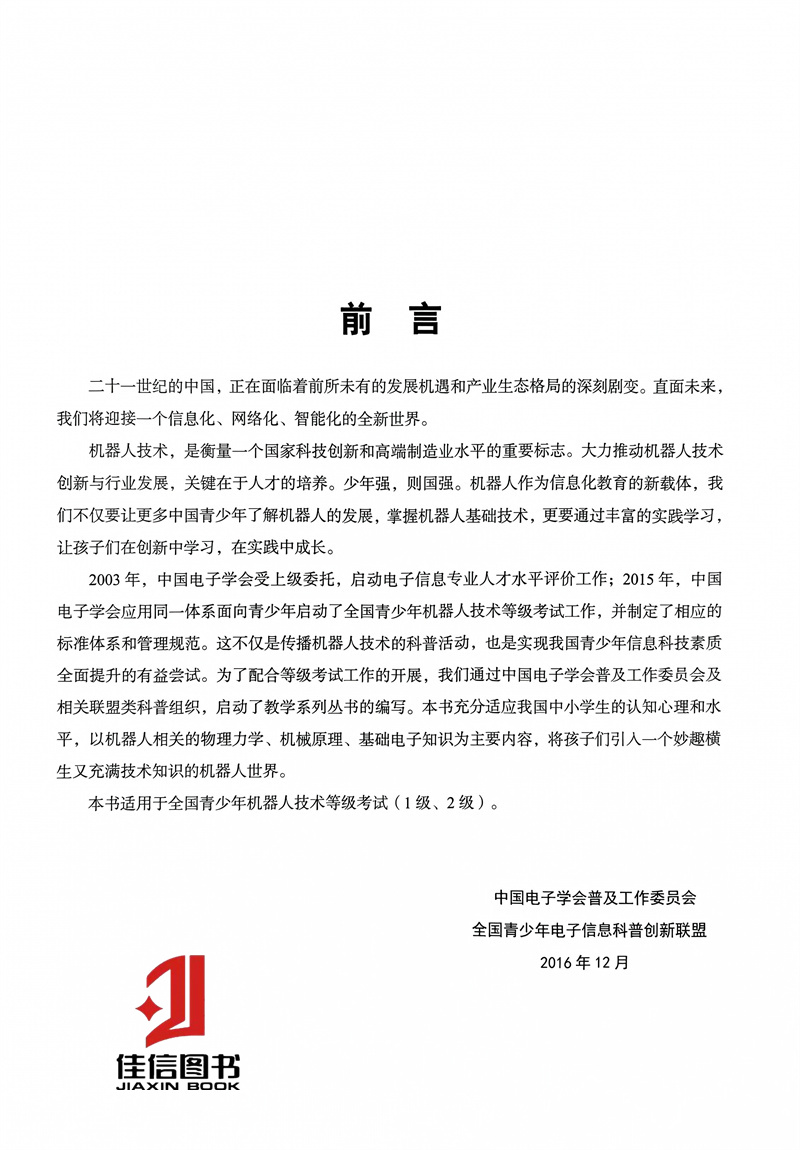 全国青少年机器人技术等级考试一二级指定教材 机器人基础技术教学 中国电子学会普及工作委员会编 现货 正版