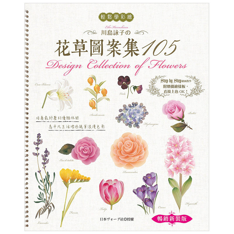 预售 中文繁体艺术综合原版 輕鬆學彩繪:川島詠子 暢銷新裝版 进口图书书籍 花草彩繪圖案集105