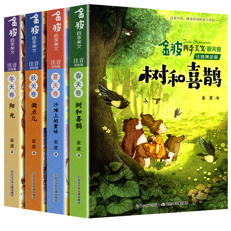 大自然故事树和喜鹊沙滩上 春夏秋冬天注音版 童话雨点阳光小学生一二年级课外童话故事书拼音绘本 美文我 全4册童话集金波四季