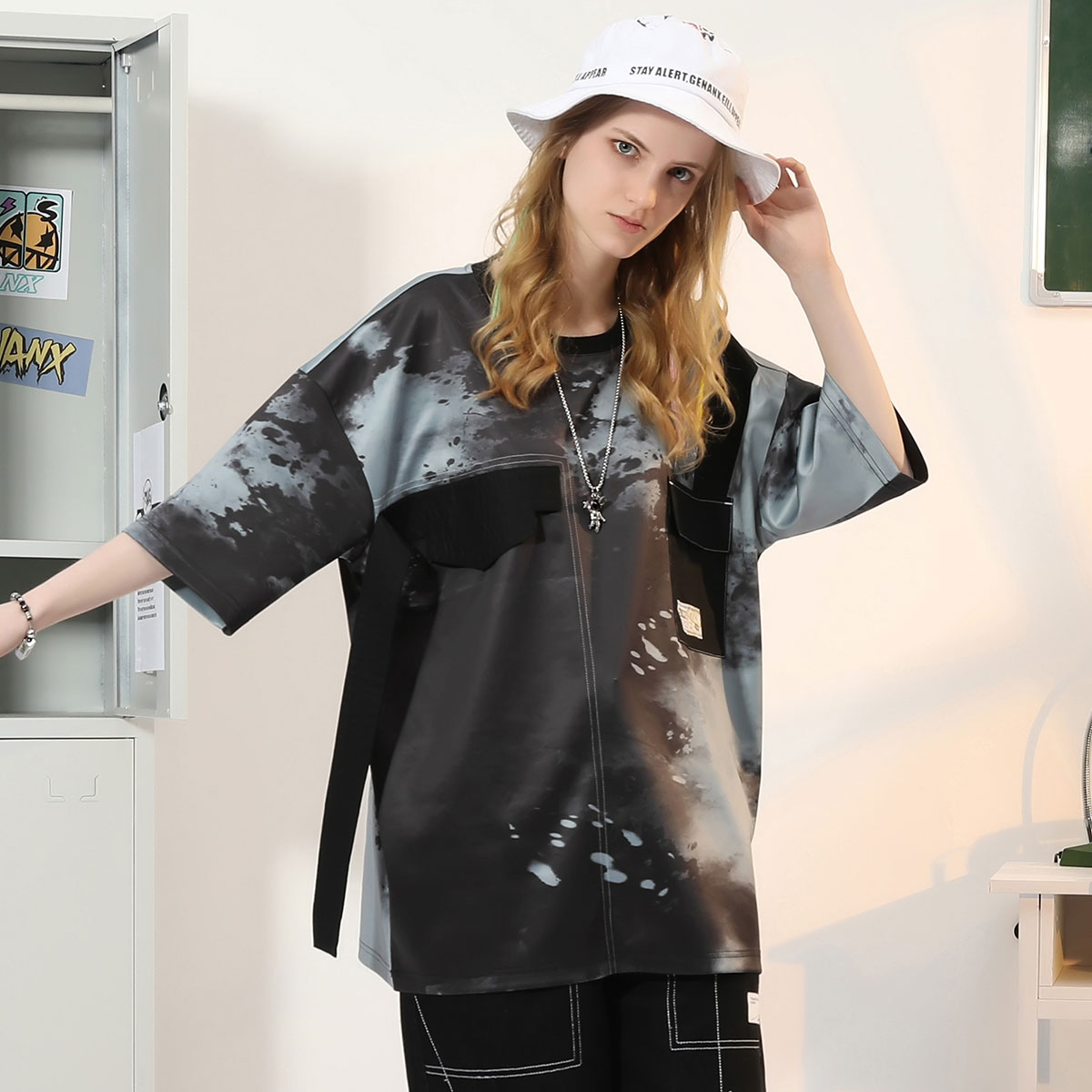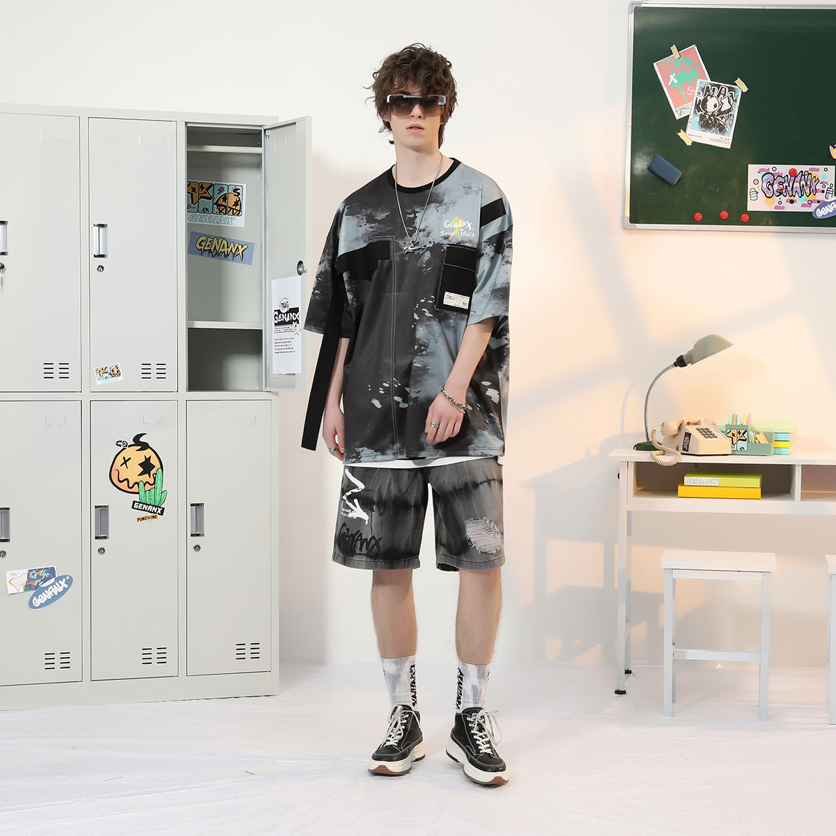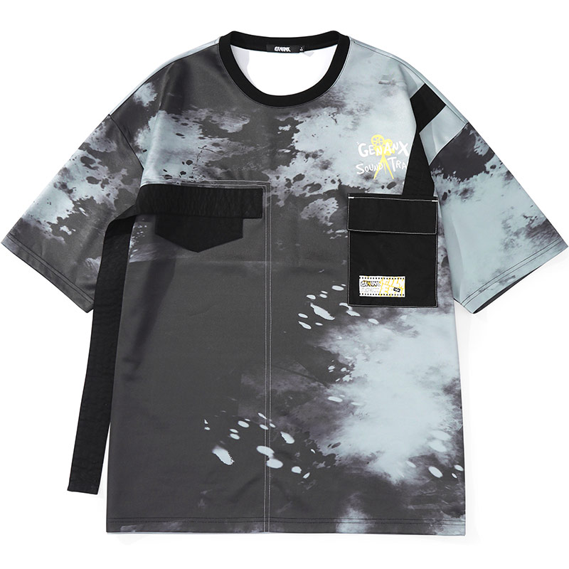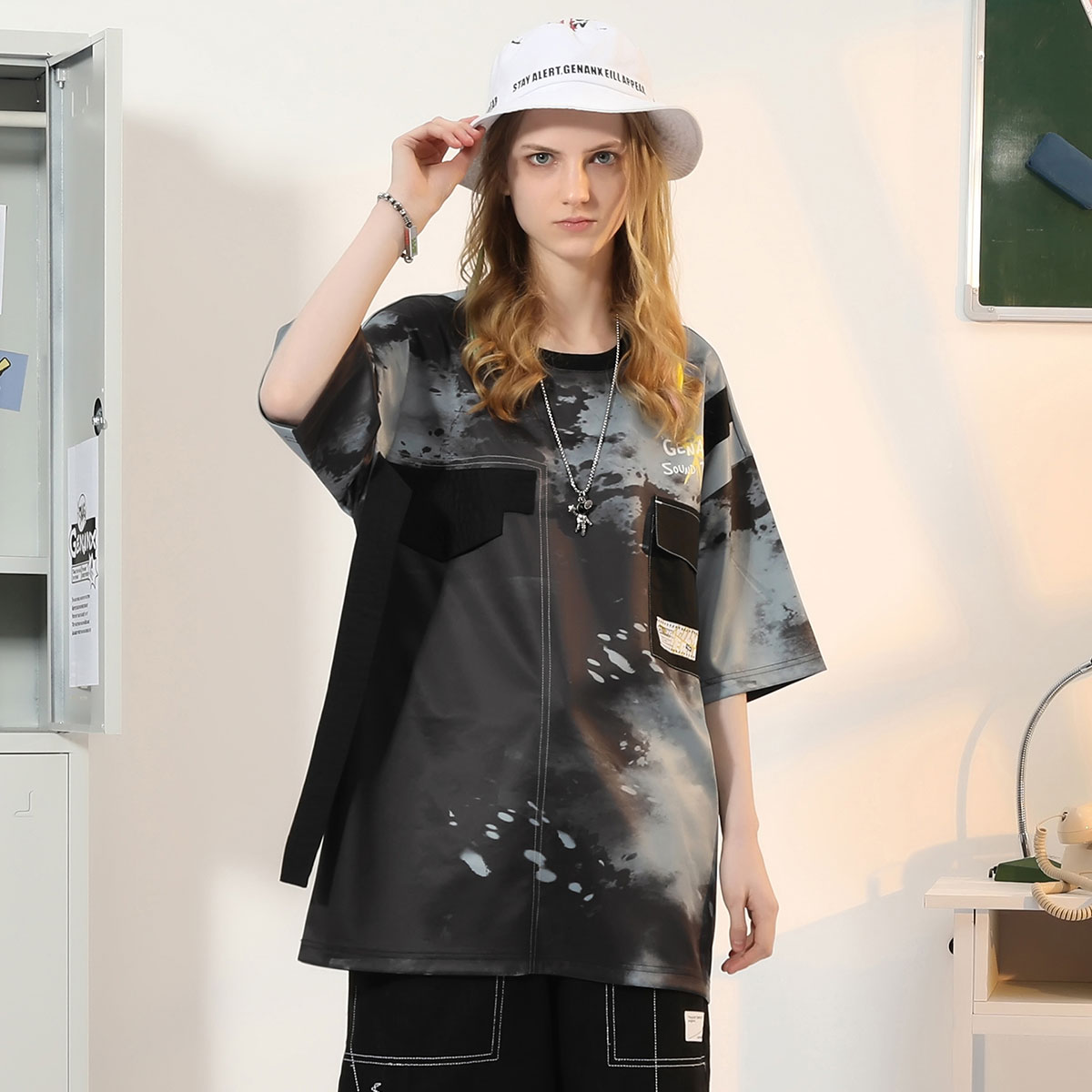 短袖 情侣装 上衣休闲 新款 GENANX闪电潮牌t恤男潮撞色泼墨印花夏季