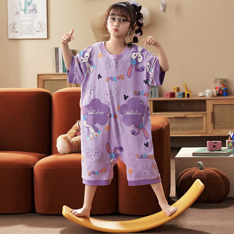 儿童夏季 纯棉吸汗睡衣按扣睡裙连体衣男童女童宝宝护肚空调家居服