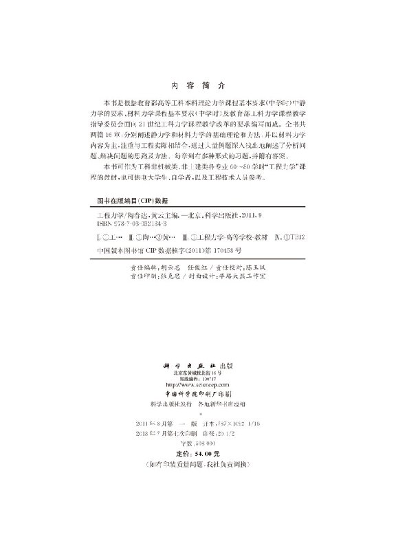 大学教材科学出版 工程力学 大教材教辅 王维 社9787030321343 黄云