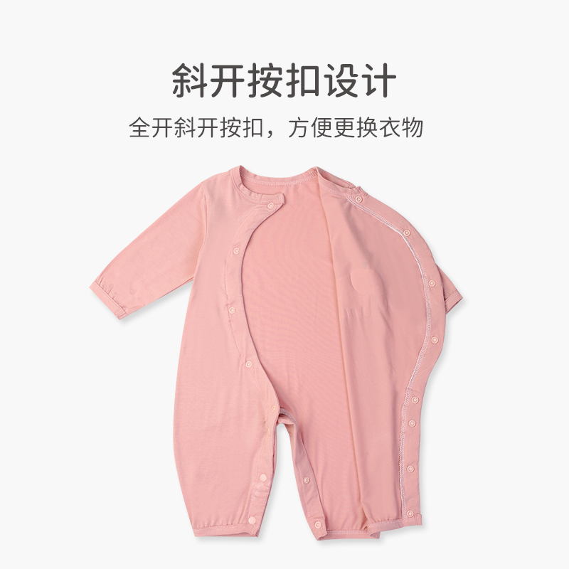 哈衣偏开按扣爬服 宝宝空调服睡衣新生儿长袖 婴儿连体衣服夏季 薄款