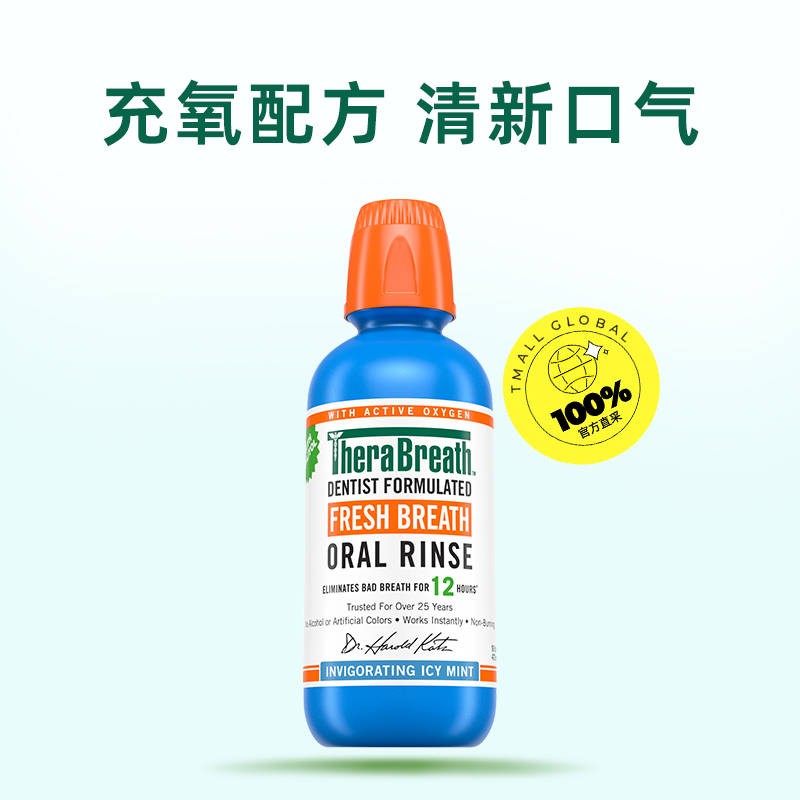 TheraBreath凯斯博士冰凉薄荷漱口水473ml0酒精不刺激 自营