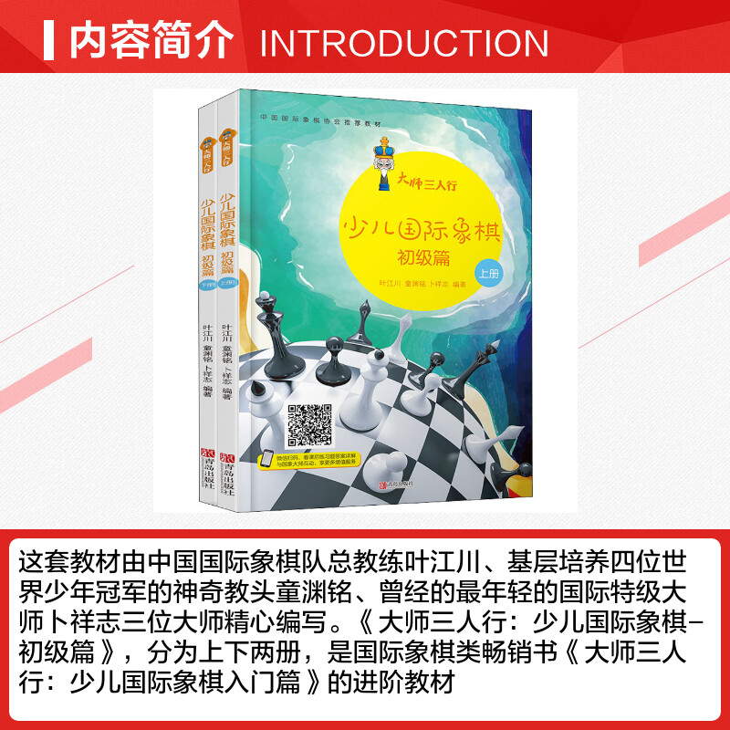 叶江川 著 少儿国际象棋 全2册 图书籍 社 大师三人行 新华书店正版 童渊铭 初级篇 新 体育运动 卜祥志 青岛出版 文教