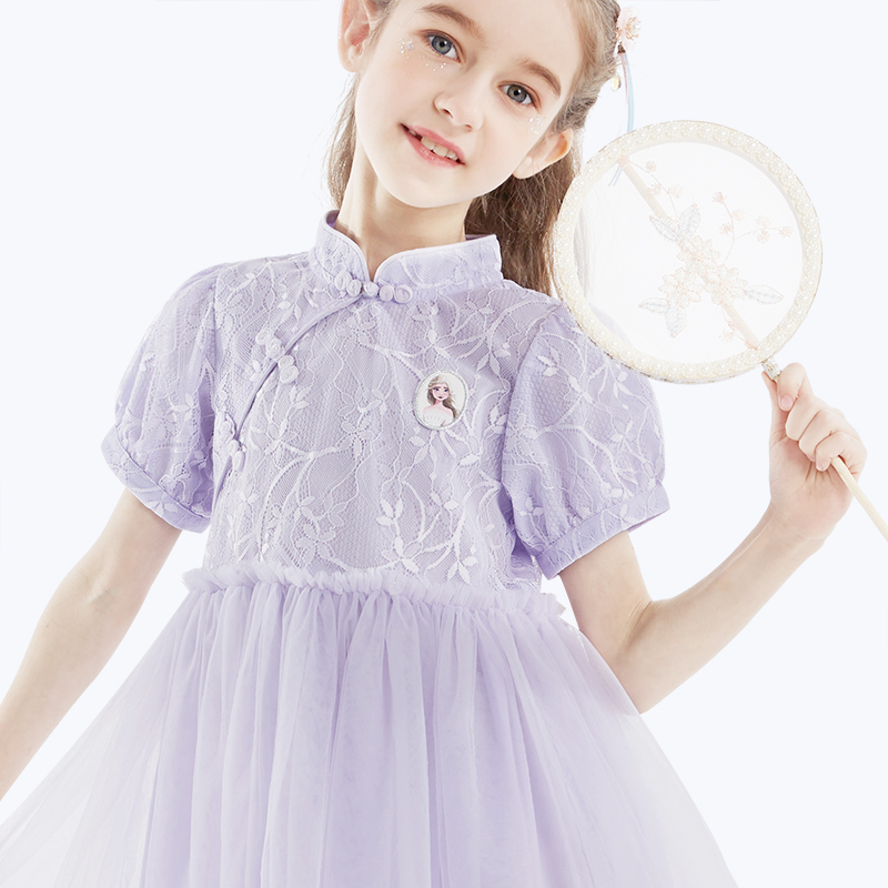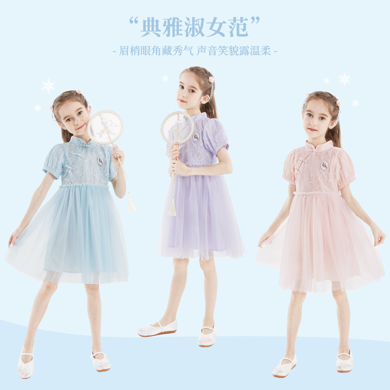 迪士尼女童公主裙汉服艾莎连衣裙儿童裙子小女孩夏装 纱裙国风 新款