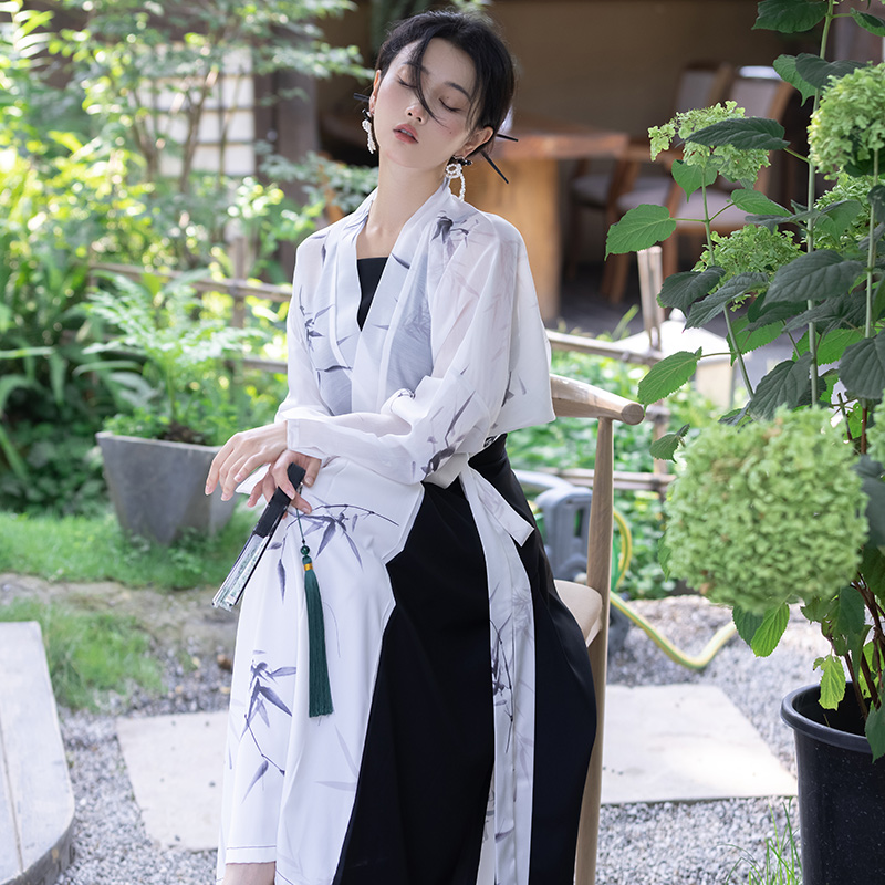 新中式 少女学生改良旗袍上衣雪纺半身裙茶艺服 民国风日常汉服套装