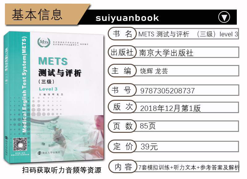强化教程 社 饶辉 3级 模拟试卷 大纲全国医护英语水平考试 三级 新版 南京大学出版 正版 答案及解析 METS测试与评析