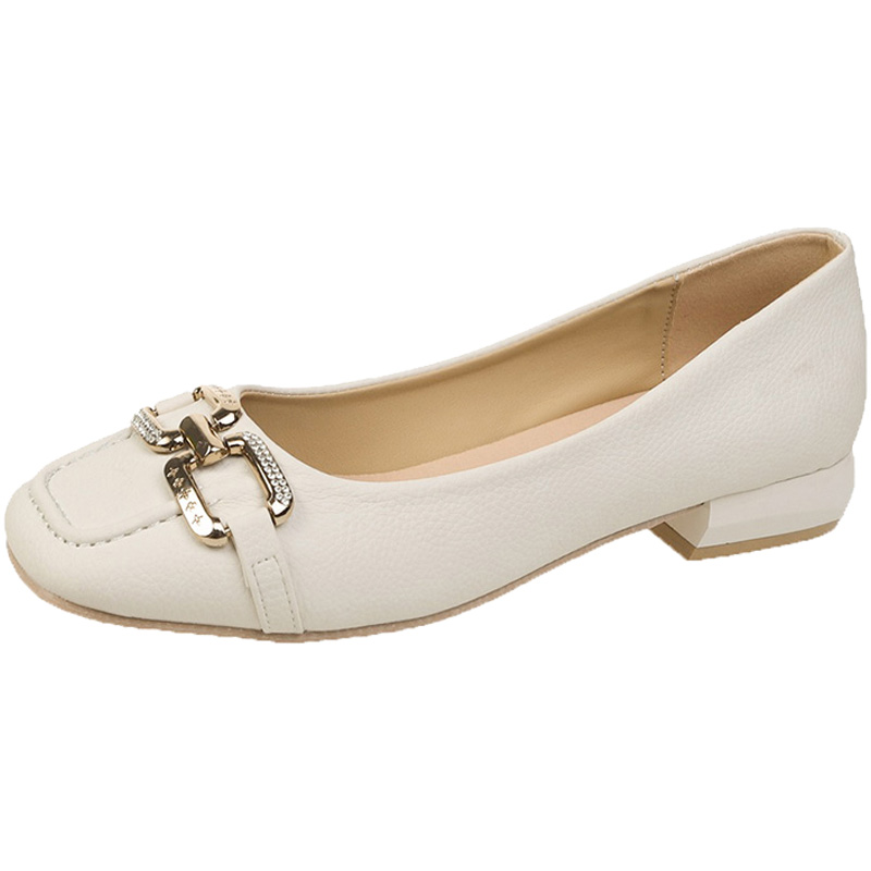 方头网红乐福豆豆鞋 气质单鞋 浅口金属扣平底瓢鞋 夏季 女2024年新款