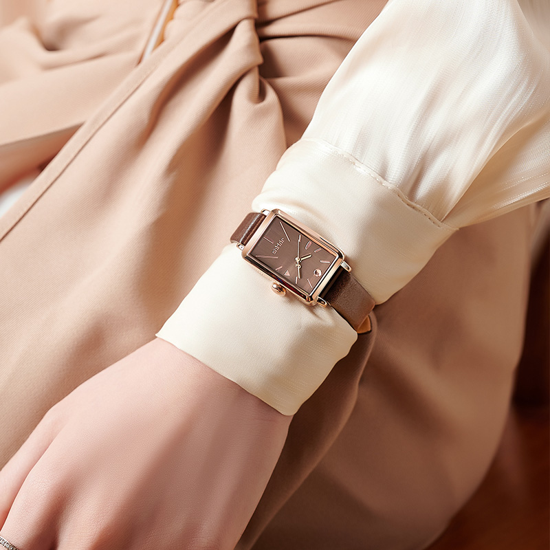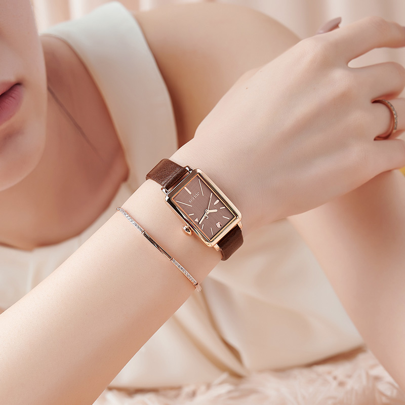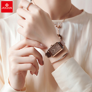 聚利时手表女夏季 复古小众设计方形石英真皮带表小棕表 2025年新款