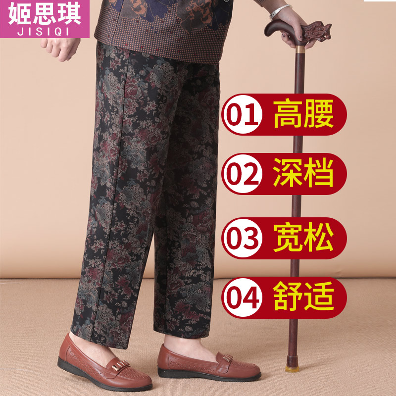 子 加肥老人妈妈花裤 春秋老年人裤 子女中国风印花刺绣老太太奶奶裤