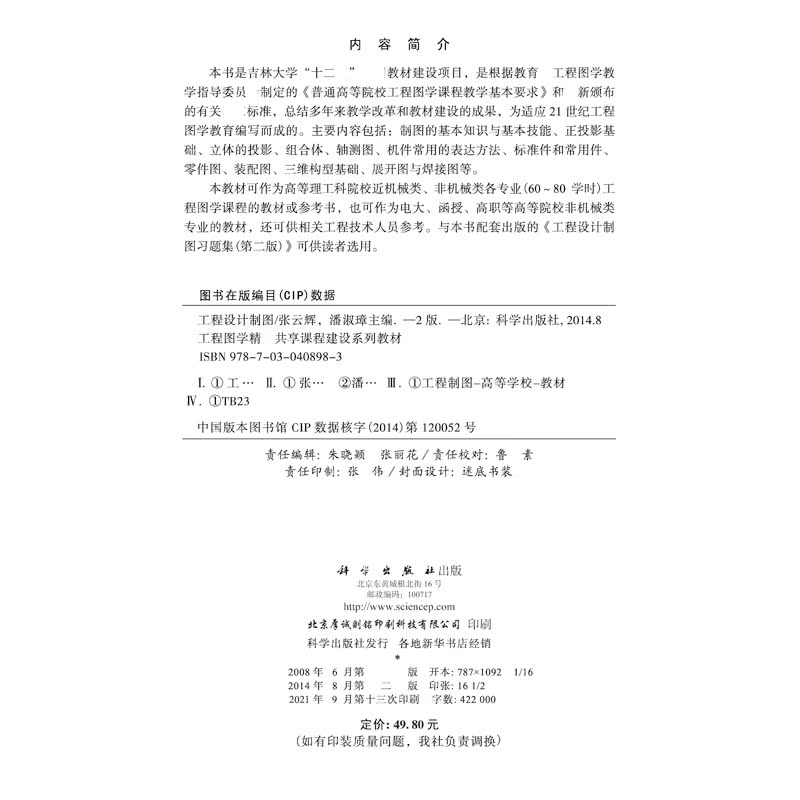第二版 科学出版 第2版 潘淑璋 社 张云辉 工程设计制图