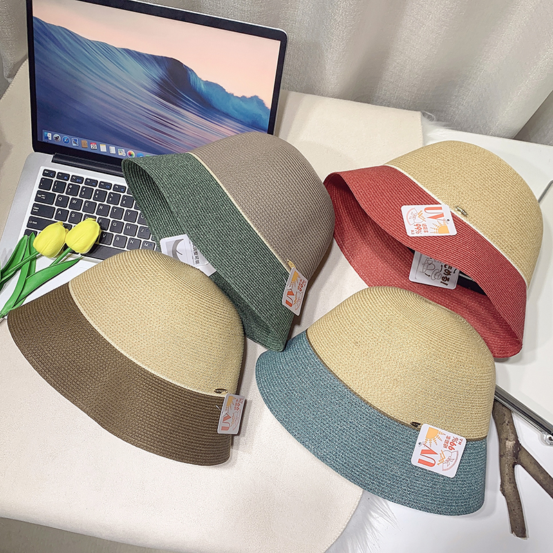 日本高品质可折叠条纹草帽女款 凉帽防晒帽太阳帽子 宽檐渔夫帽夏季
