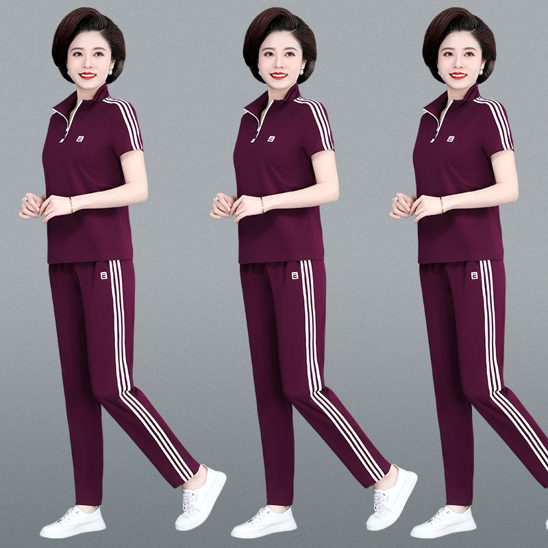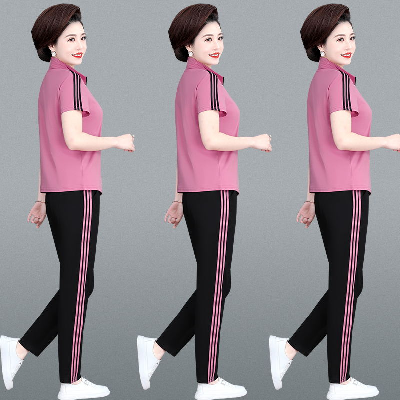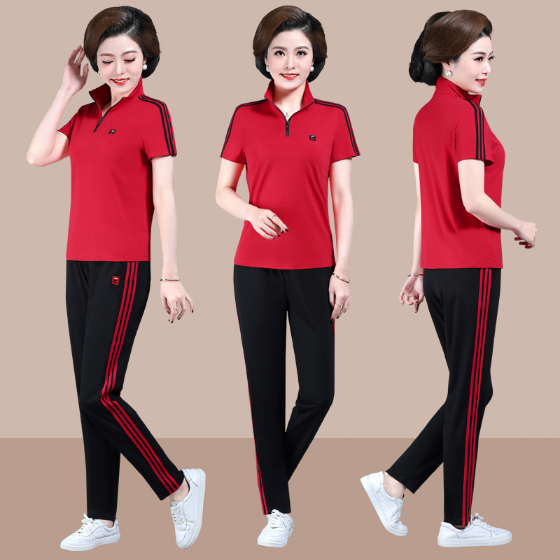 t恤长裤 运动服套装 翻领短袖 2025新款 休闲跑步宽松两件套薄 女夏季