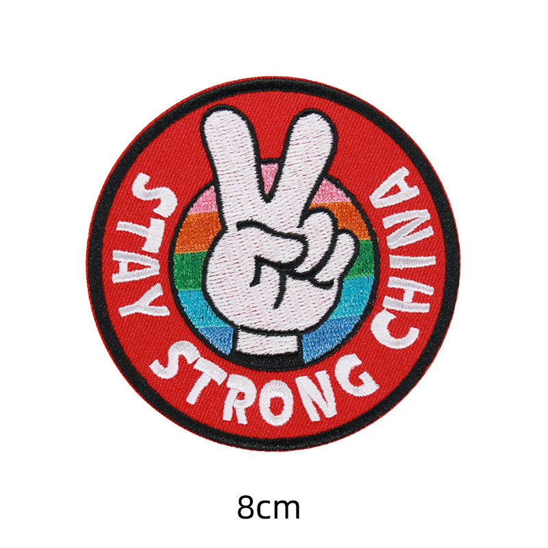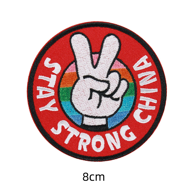 圆形国潮自粘刺绣装 手势图案补丁贴衣服中国无痕修补贴 饰布贴时尚